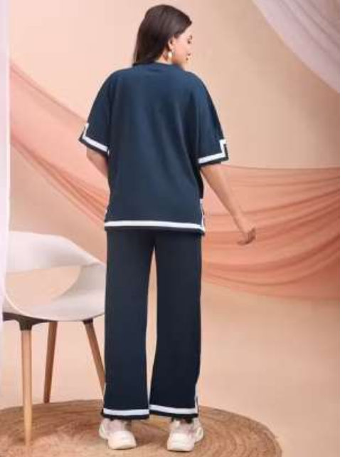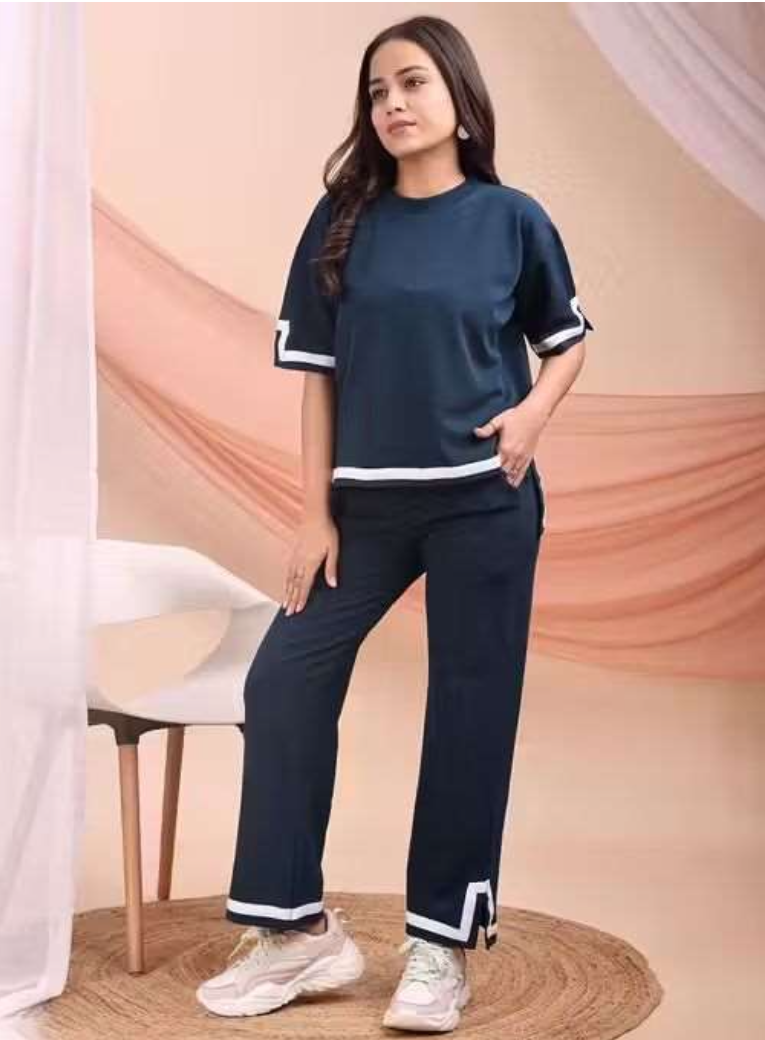NavyBlue Co-Ord Set with white Trims